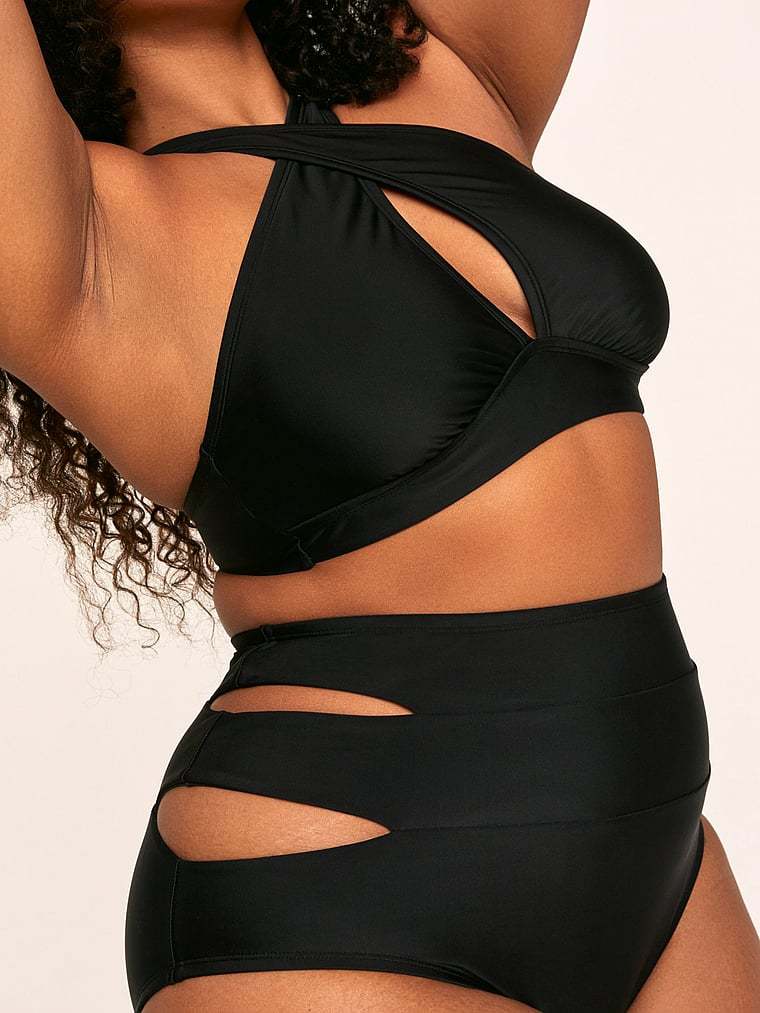 With soft microfiber and removable padded support, this bikini top offers custom comfort for beachside lounging.
