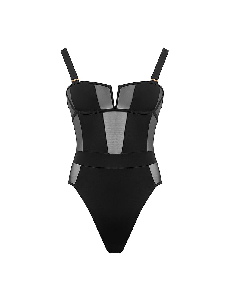 Sheer mesh panels give this supportive and chic Swimsuit an ultra-glamorous feel. Pair with sandals and linen Pants for an elevated, resort-ready look.