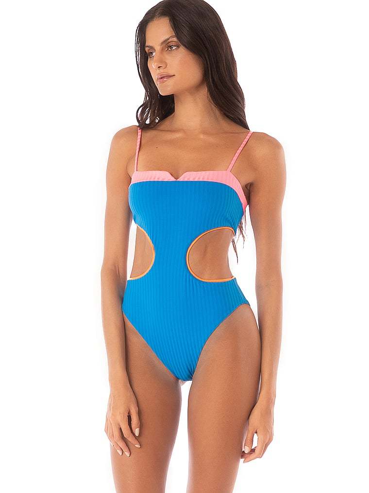 Show off your curves in this bright, one-piece Swimsuit that features bold cutouts and a reversible design (so you get two looks in one).