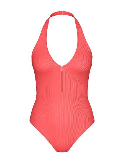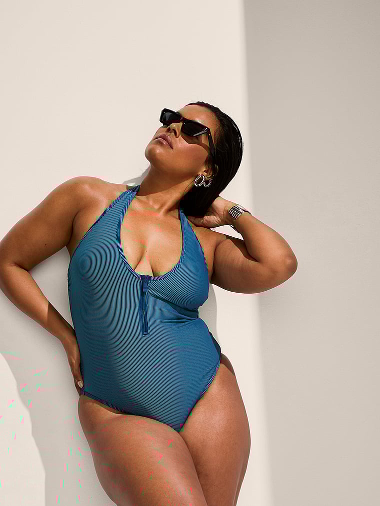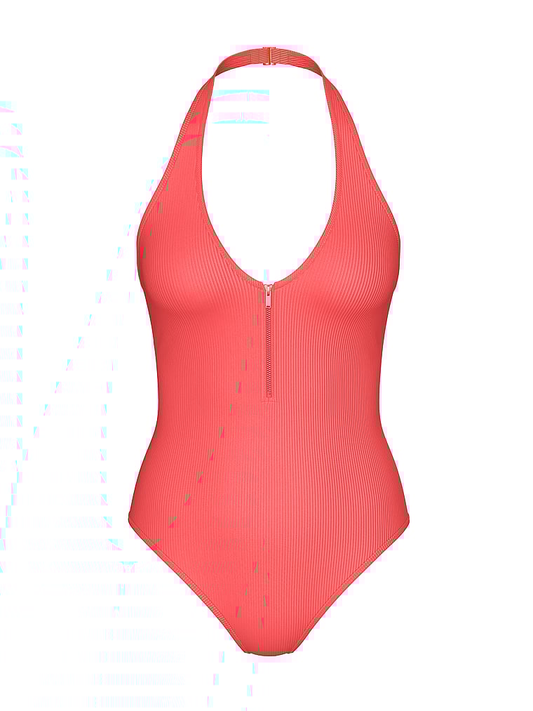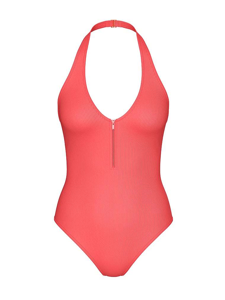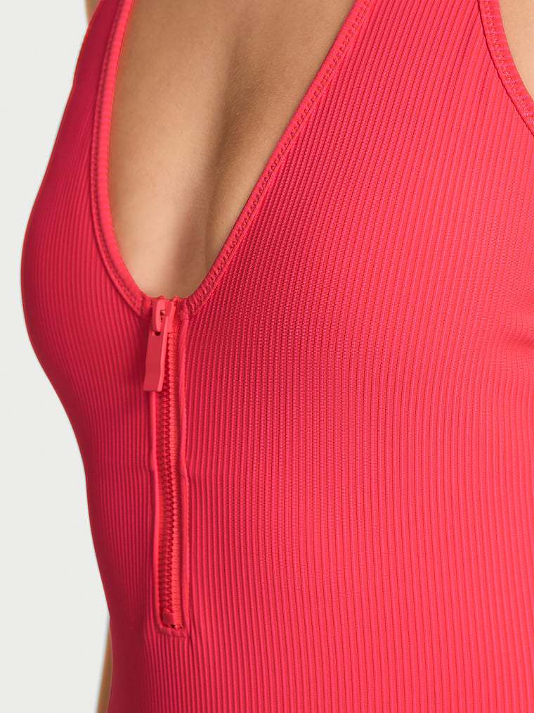 Victoria's Secret Swim Two-Tone Rib Plunge Zip One-Piece Swimsuit